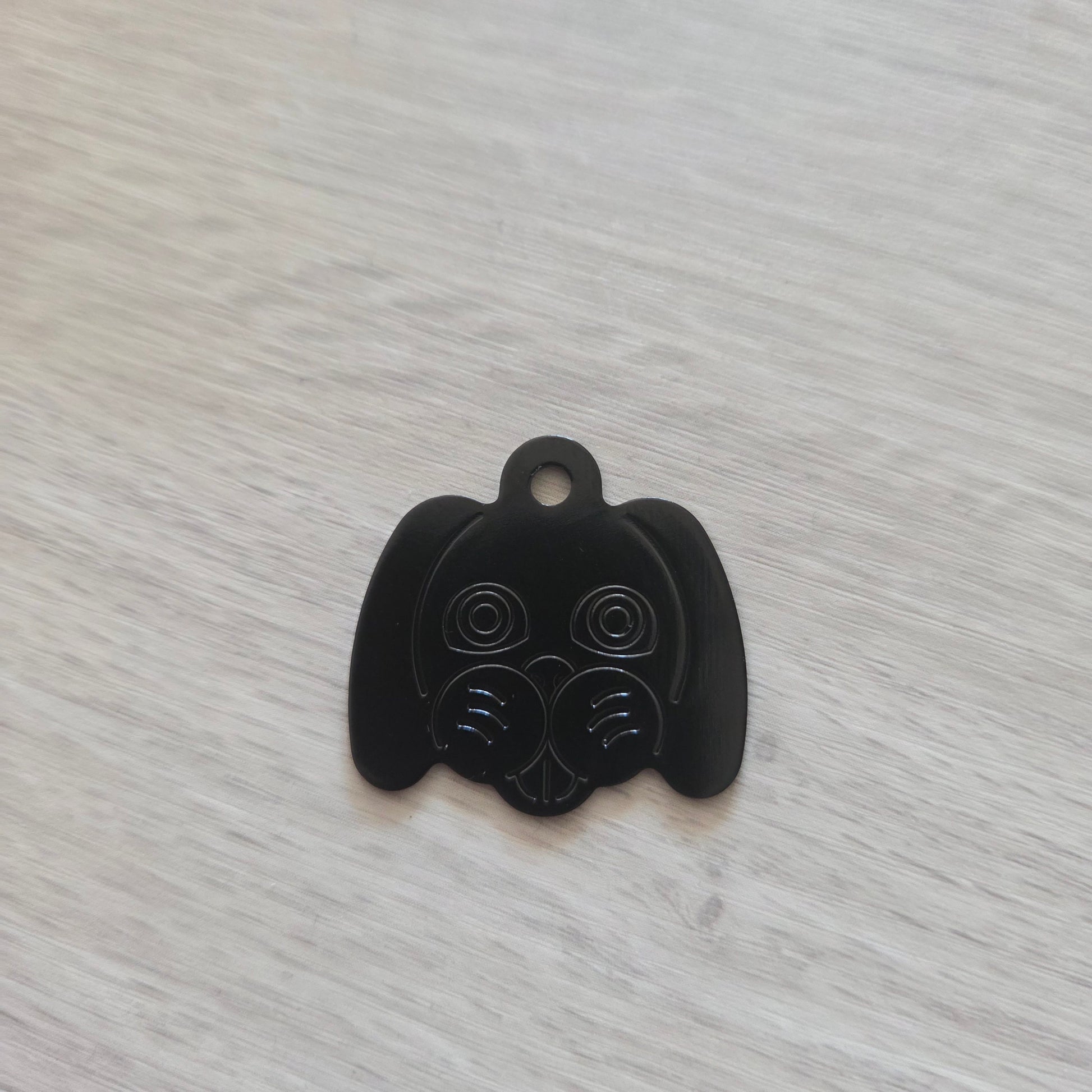 Ensure your dog's safety with this expertly crafted dog-shaped ID tag, personalized with your pet’s name and your contact details.