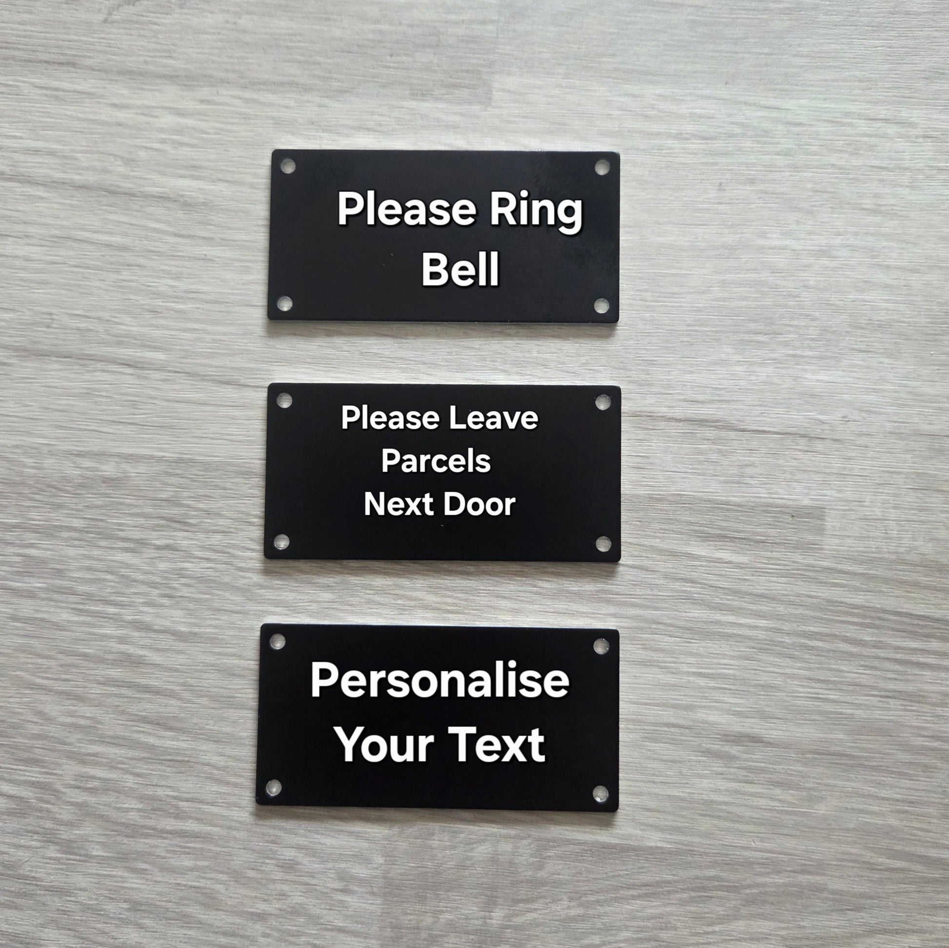 House Door Signs Personalised Etched Metal Sign Ring Bell/Parcels or Own Message